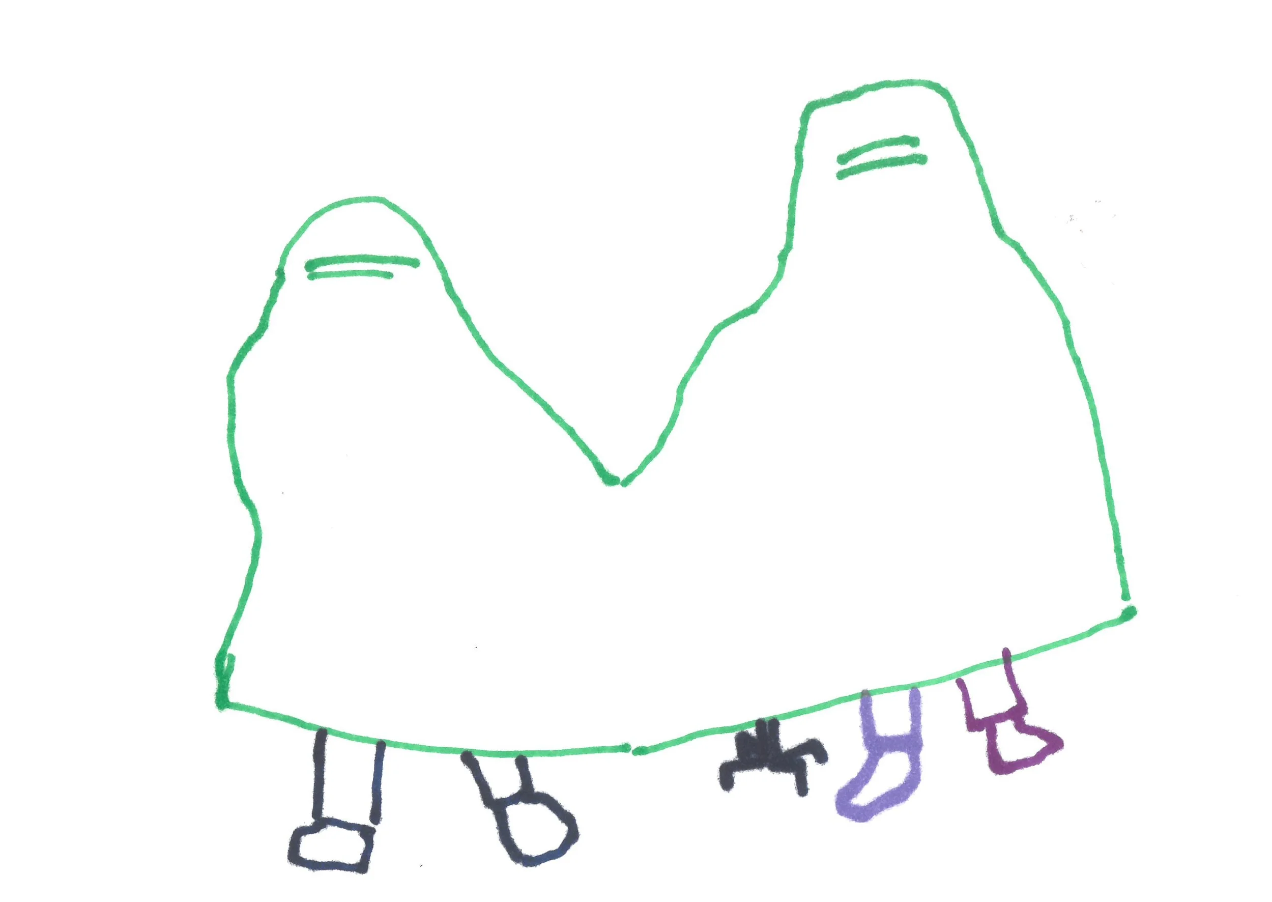 우리는 일상의 다양한 장소를 방문하며 걷는 과정을 영상으로 기록하였고 불안전한 경험을 감각하였다. 불안전하고 위험한 경험은 스스로를 안전하게 보호할 수 있는 방식을 모색하게 하였고 울퉁불퉁한 거리를 걷는 경험은 일상에서 흔히 볼 수있는 에어캡을 활용하여 신체를 보호해 보는 방식으로 날씨에 따라서 외출이 힘들었던 둘의 경험은 함께 착용가능한 우비 형태로 확장 되었으며 어두운 밤, 도로의 번잡함과 차량 진입으로 느린 속도의 걷기가 이동에 참여할 수 없었던 기억의 대화는 드로잉으로 이어지며 웨어러블 오브제 제작 방식을 구체화시켰다.